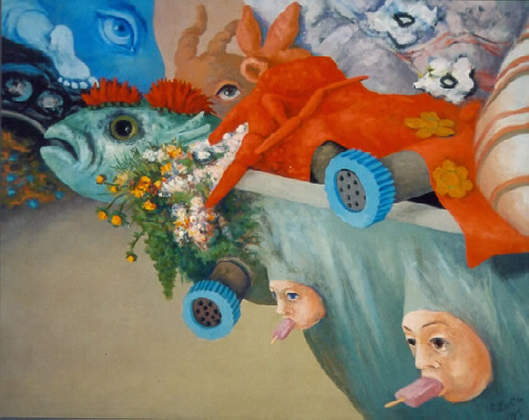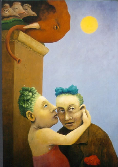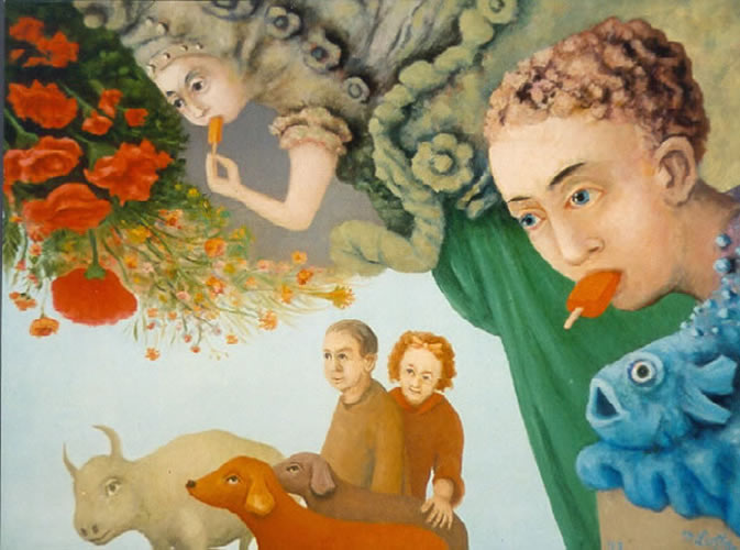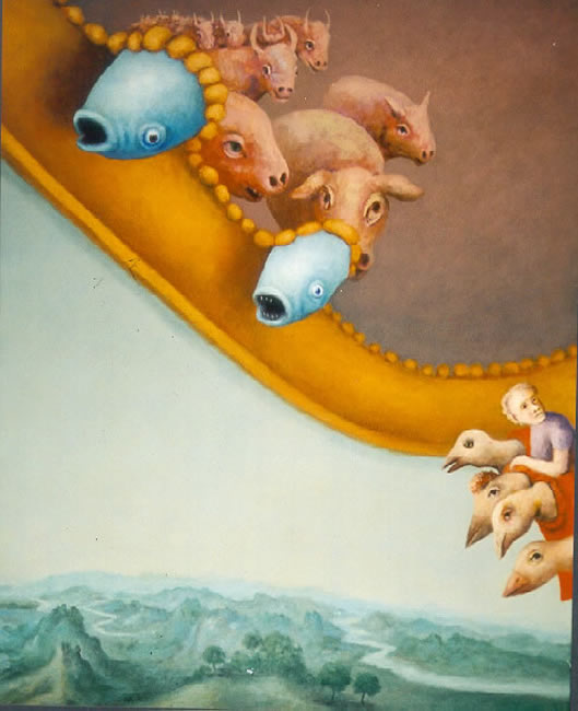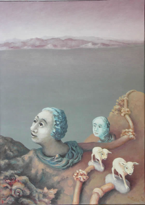 Heads and Lambs in a Landscape, 50 x 70 cm, 1992