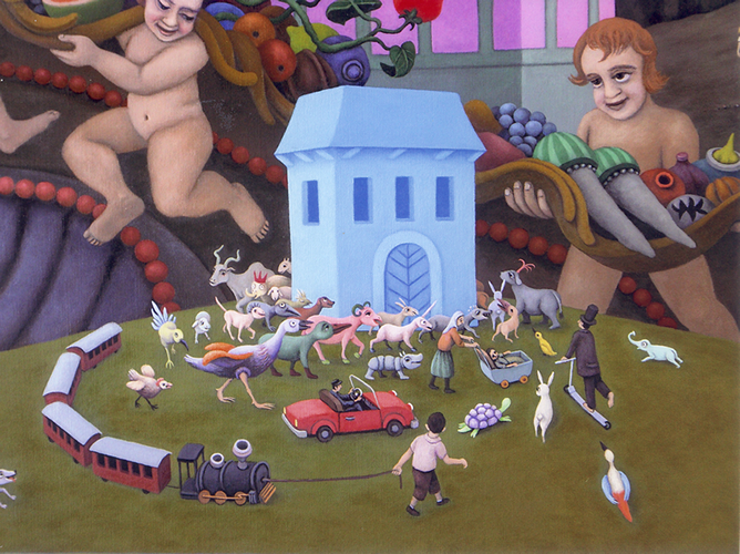 ![]() Not only our Fox-Prospero, almost everybody is gazing in the same direction, they all seem to want the same thing, to be united by a secret CONSENSUS about what the object of their desire should be, and this is the Blue House visible in the foreground. ![]() The Blue House is ... Happiness. (A friend of mine told me once: ‘Happiness has somehow to do with Love, and Love needs a house in order to unfold.’)