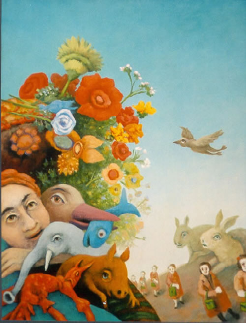 Composition with Flowers, Animals, and Housewifes, 65 x 50 cm, 2003