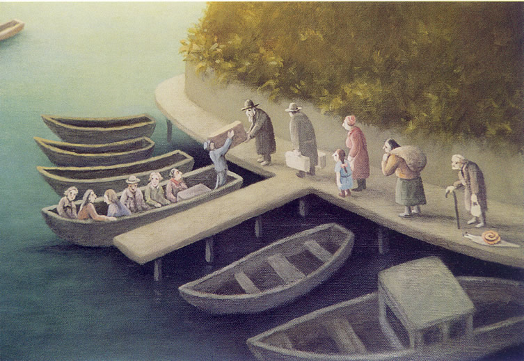 Feierlicher Empfang der Kaiserin Maria-Theresia im Hafen von Klausenburg, Detail: Die Auswanderer