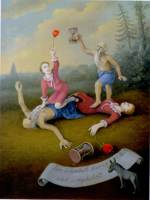 Wenn man die Grundparadoxie des Daseins durch paradoxe Aussagen zu bewältigen und die Wörter stellvertretend fur die Realität zu retten versucht, ist das Ergebnis fatalerweise zweideutig und unbefriedigend, was in der zentralen Aussage in diesem Zyklus zum Ausdruck kommt: Die Schönheit besiegt die Zeit und umgekehrt.