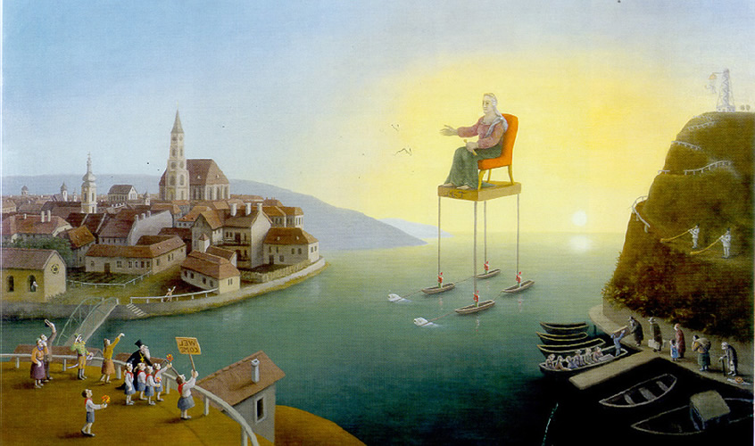 Die Farben auf dieser Leinwand waren noch nicht ganz trocken, als ich in einem Buch (2) auf folgendes Wort gestoβen bin, in einem Satz über die Gemeinsamkeit all der Volker zwischen Baltikum und dem Schwarzen Meer. Sie alle warten nämlich auf etwas, was nie kommen wird, es sind dies „Godot népei", die Völker Godots ...